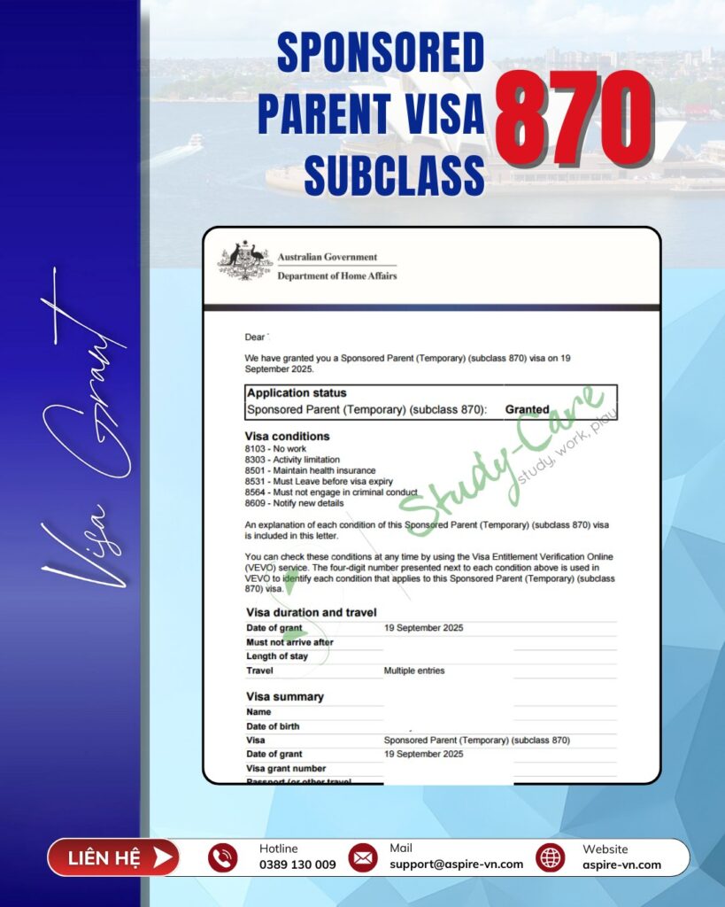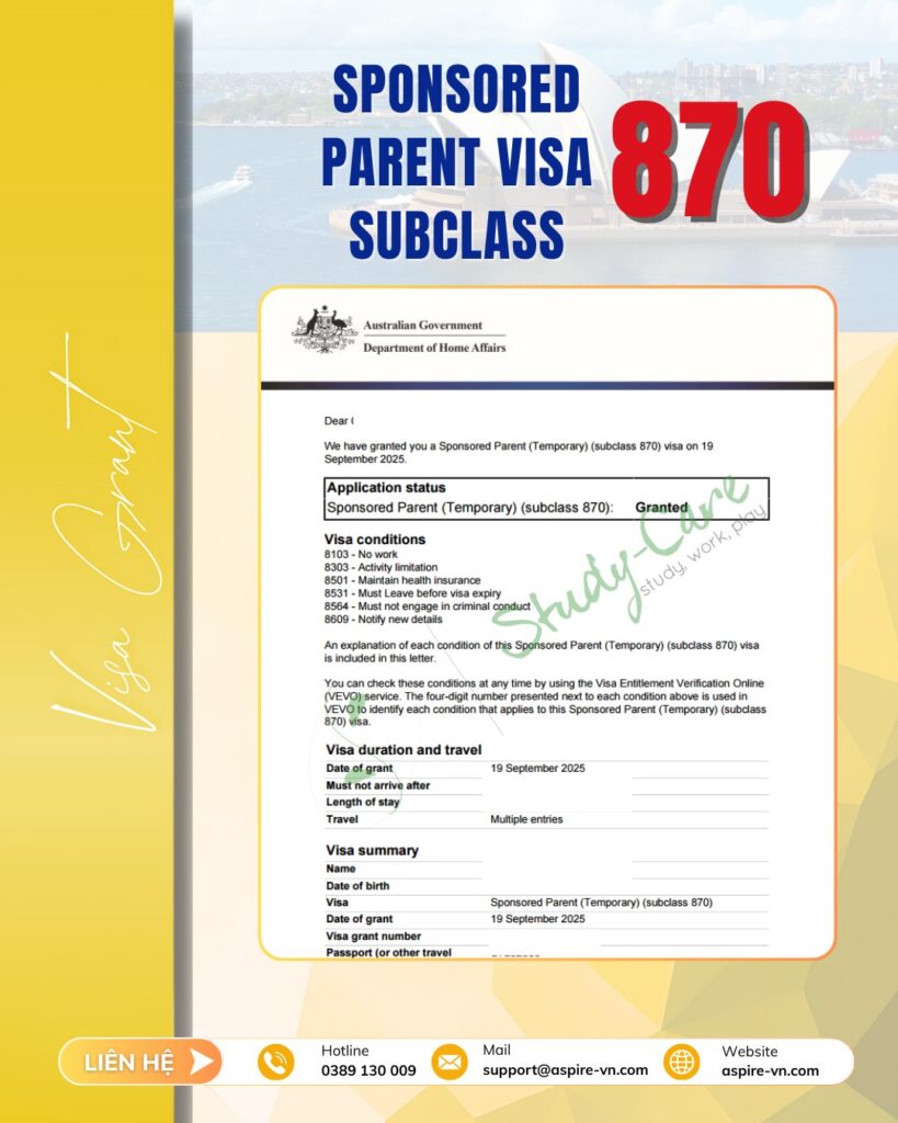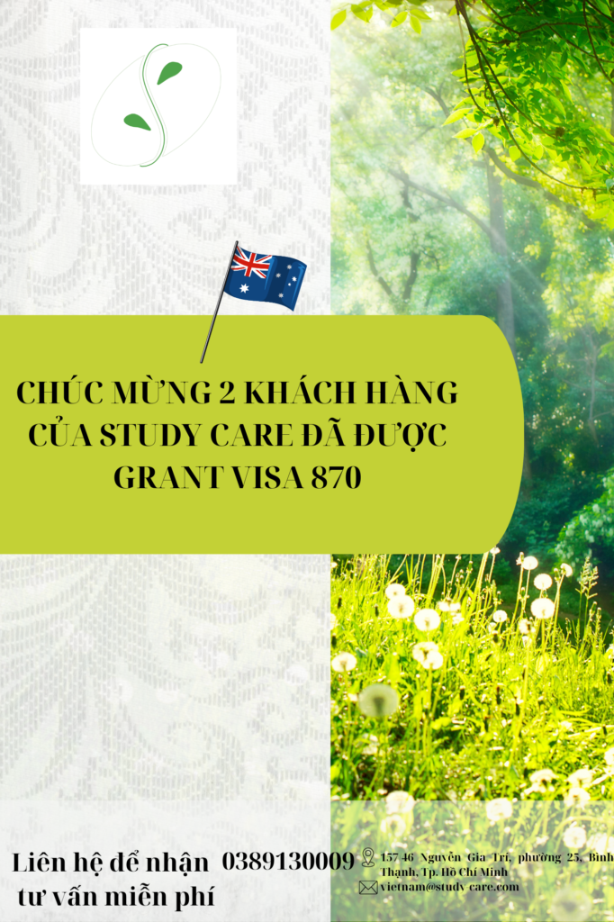 Đây là 2 visa Study-Care vừa nhận được ngày 19/09/2025. Điểm đặc biệt của bộ hồ sơ này là sau khi được nộp từ 02/2025, đội ngũ Study-Care đã đồng hành cùng khách hàng, hỗ trợ giải trình chi tiết và thu thập đầy đủ mọi bằng chứng, dù nhỏ nhất, để gửi tới Bộ Di Trú Úc. Kết quả tuyệt vời là Bộ Di Trú Úc đã quyết định cấp visa 870 cho khách hàng!