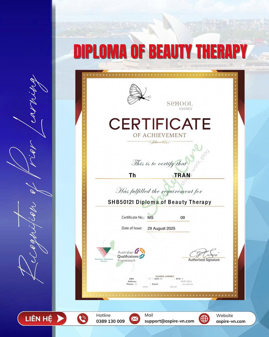 Một cột mốc quan trọng trên hành trình sự nghiệp tại Úc – chị O. và chị C. đã chính thức được công nhận kinh nghiệm làm việc trong ngành làm đẹp và sở hữu bằng SHB50121 Diploma of Beauty Therapy thông qua RPL – Recognition of Prior Learning.