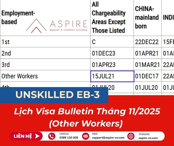 -Điều này nghĩa là các hồ sơ EB3 (Other Workers) có Priority Date trước 15/07/2021 mới được cấp visa.