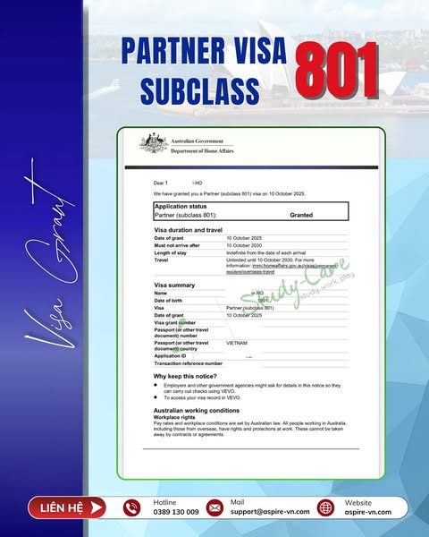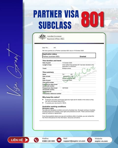 Study-Care hân hoan chúc mừng khách hàng của chúng tôi chính thức nhận DOUBLE GRANT – Partner Visa 820 & 801 cùng một ngày đặc biệt 10/10!