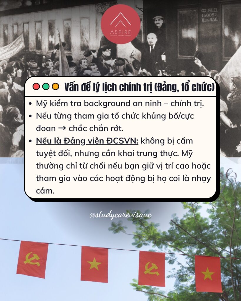 Mỹ kiểm tra background an ninh – chính trị. NênnNếu bạn từng tham gia, ủng hộ, tài trợ cho tổ chức khủng bố, hỗ trợ hoạt động khủng bố → chắc chắn bị inadmissible (không đủ điều kiện nhập cảnh) theo INA § 212(a)(3)(B).